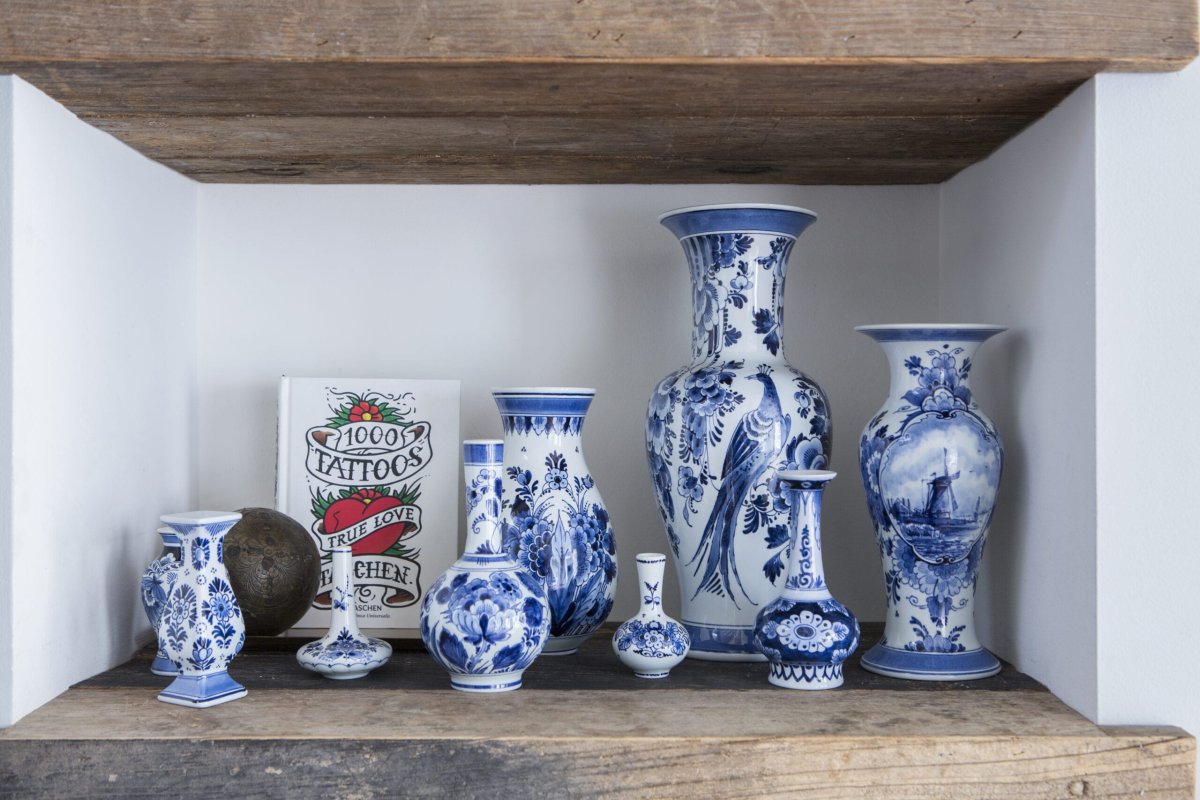 Deze handgeschilderde Delfts Blauwe vaas is vlak van vorm en heeft een geografisch bloemdecor. Een interessante Delfts Blauwe vaas in al zijn eenvoud.