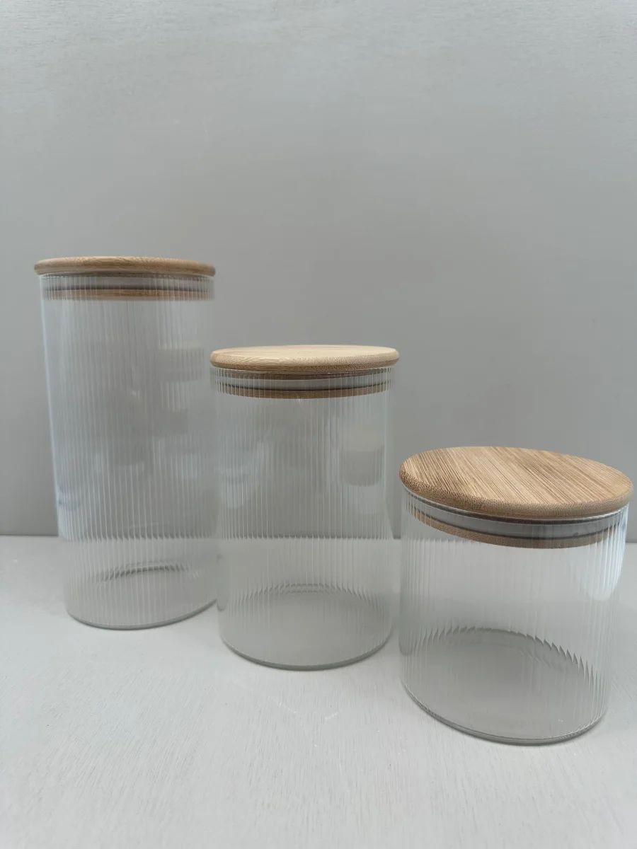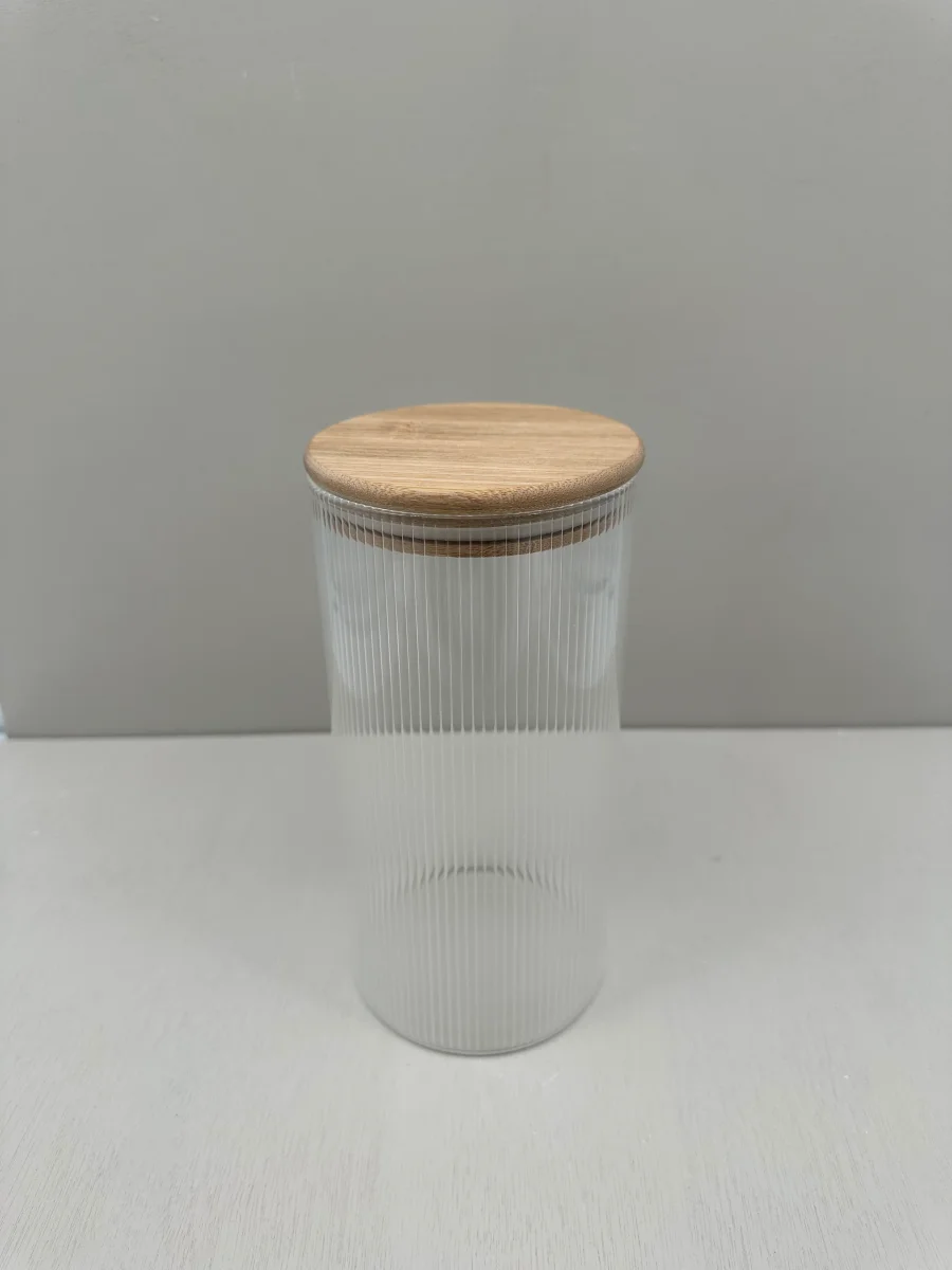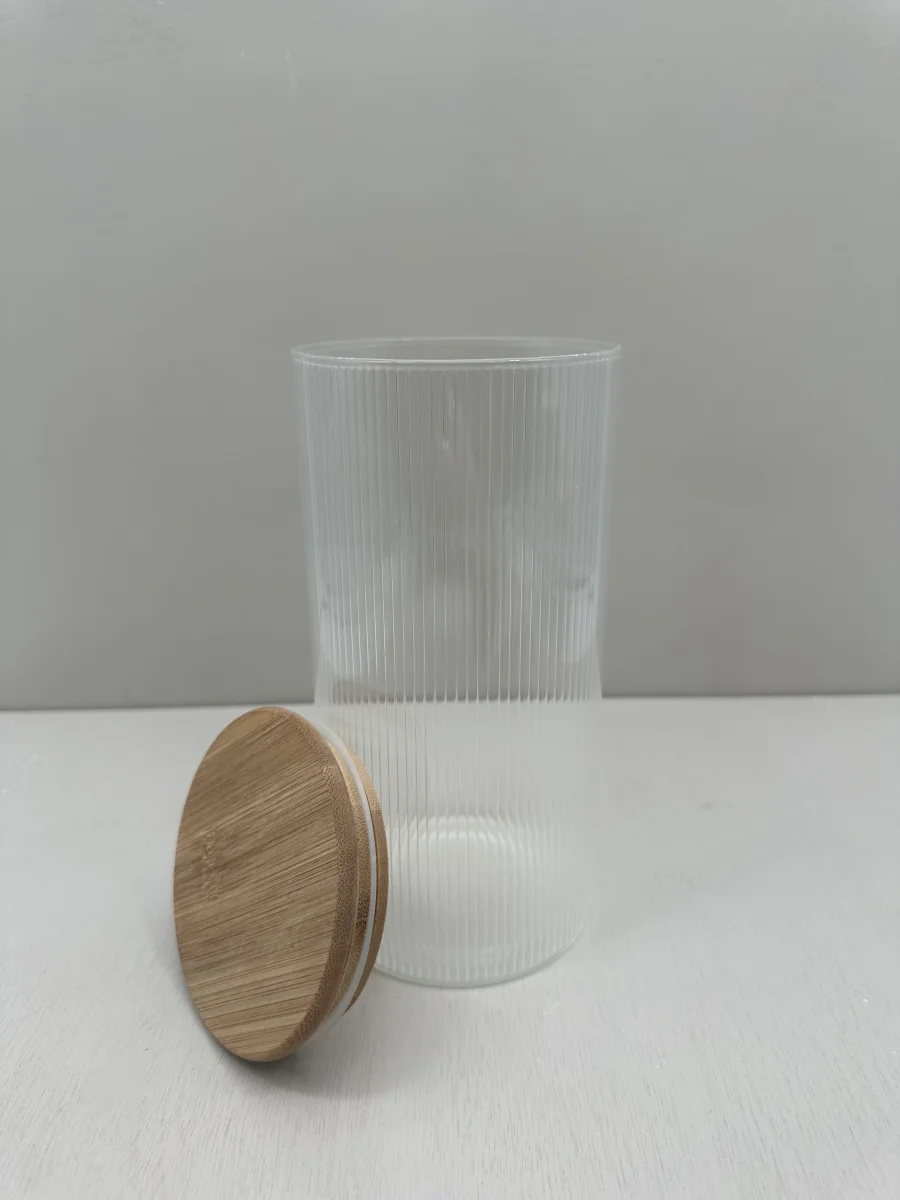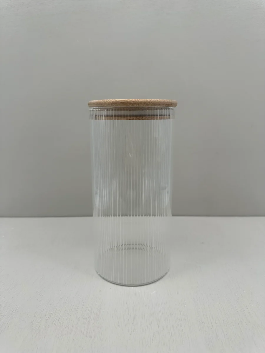 Voorraadpot ribbleglass long – bamboe deksel – 1300 ml