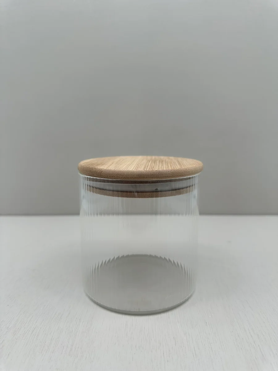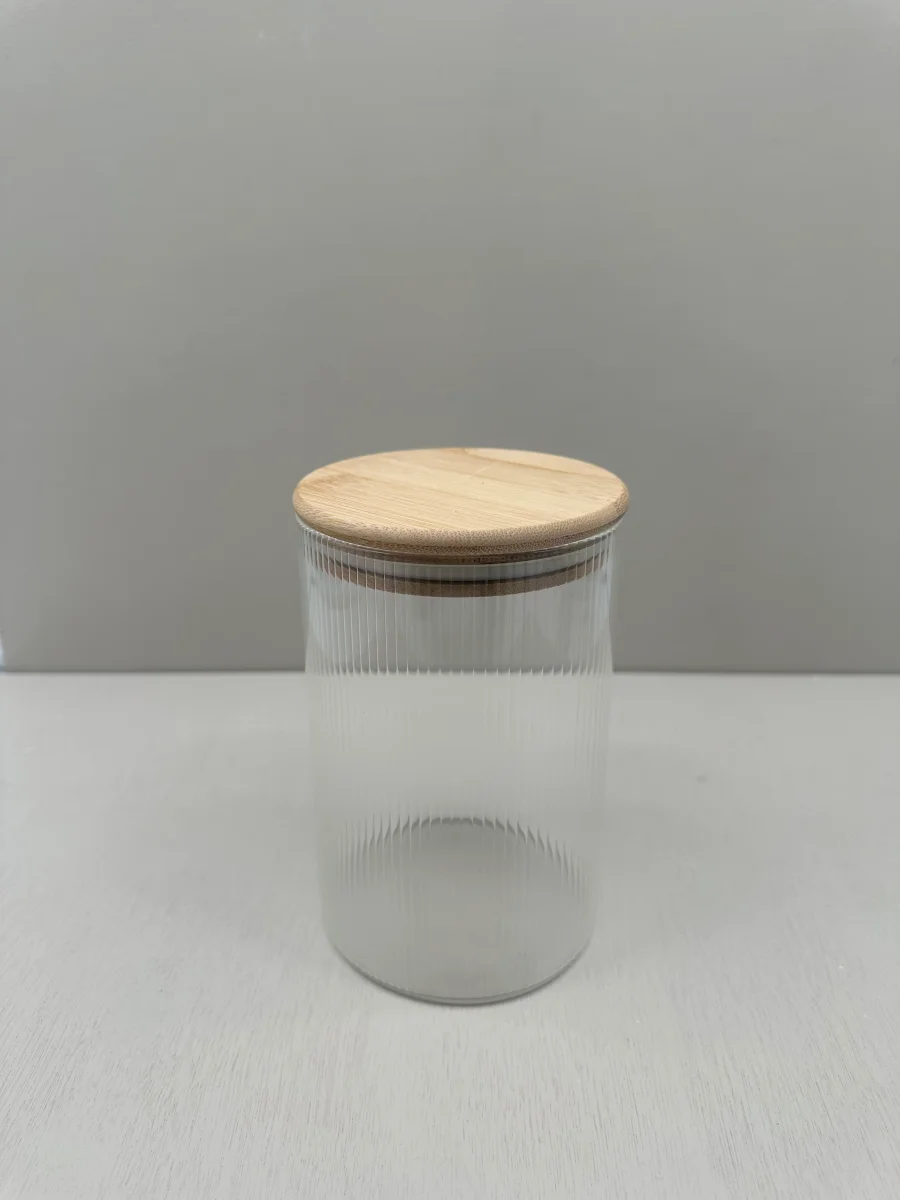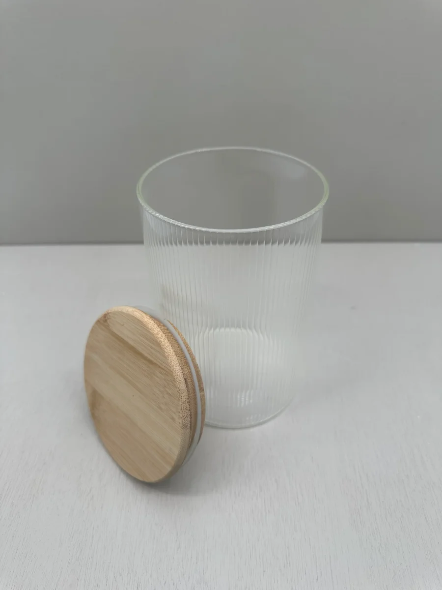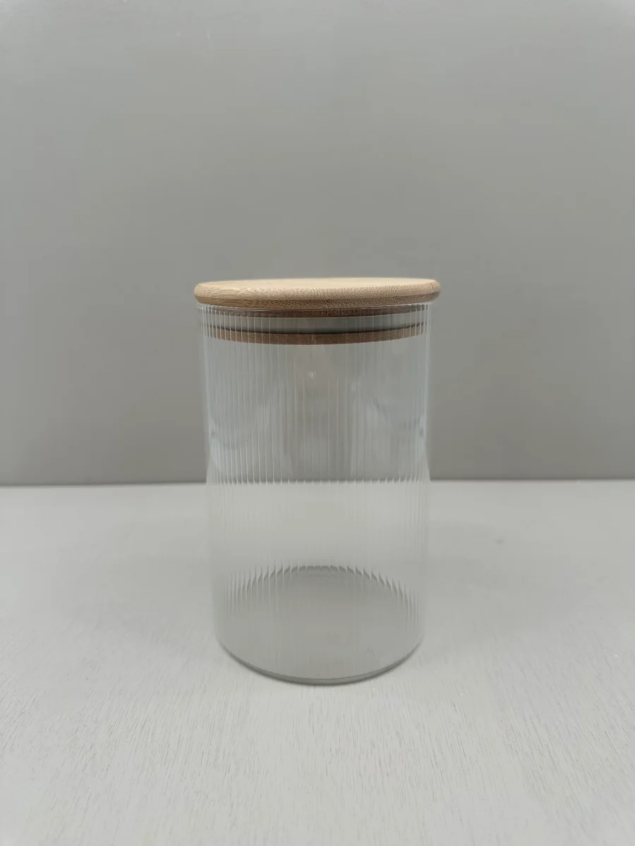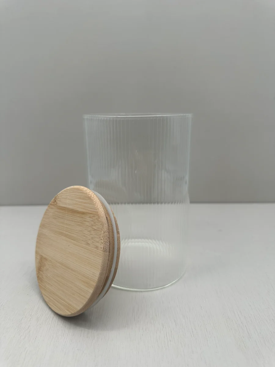 Voorraadpot ribbleglass middle – bamboe deksel – 970 ml