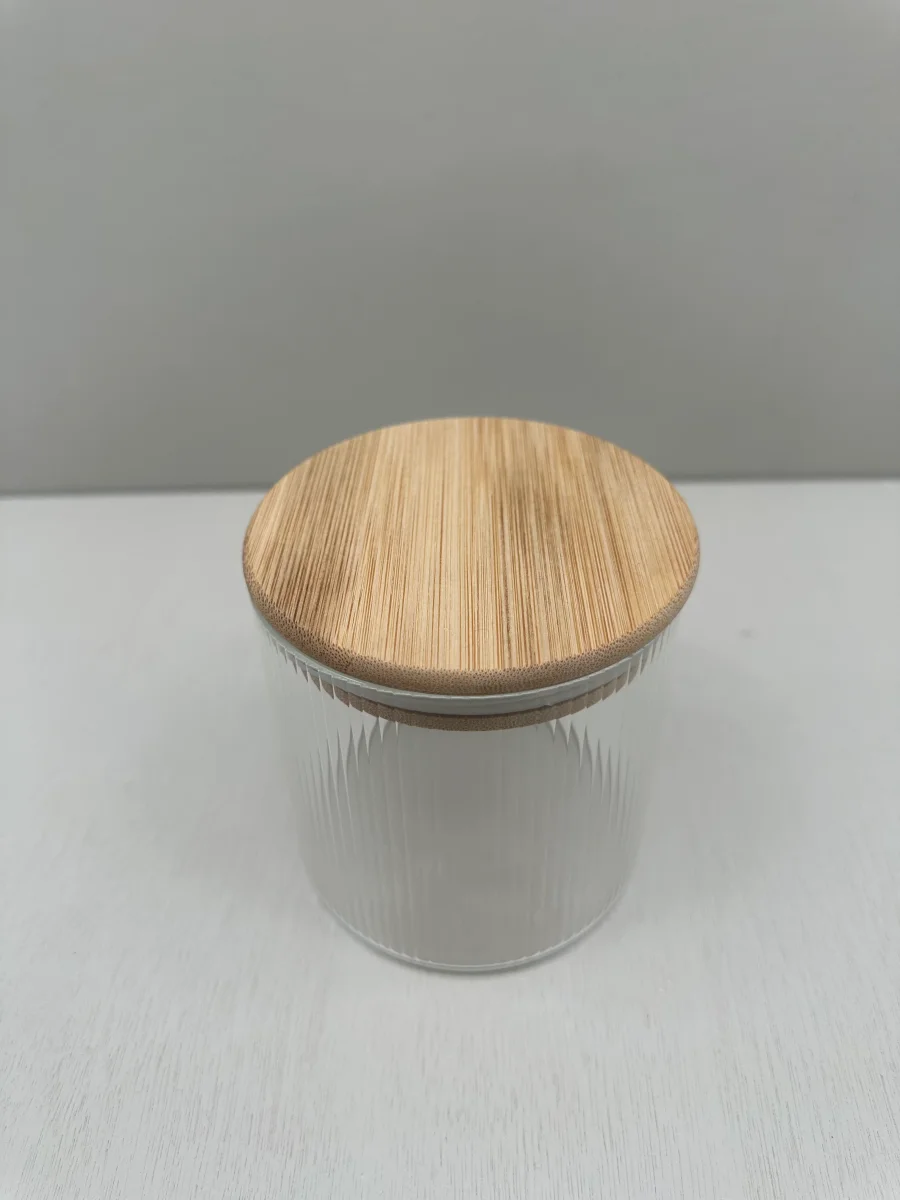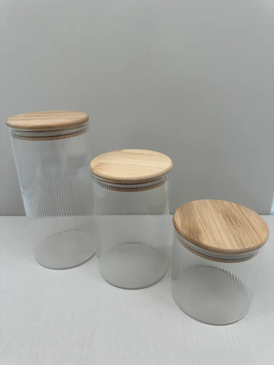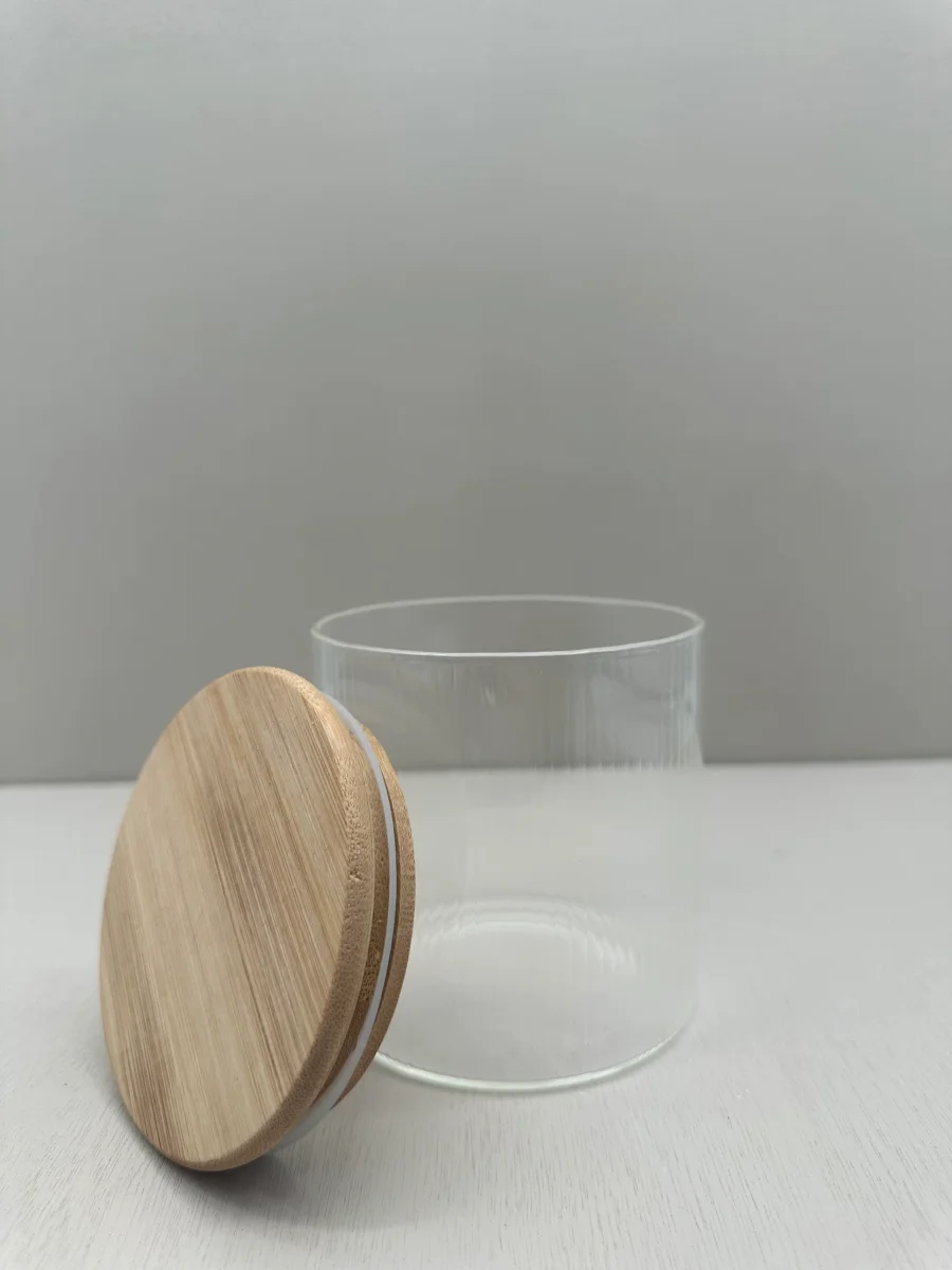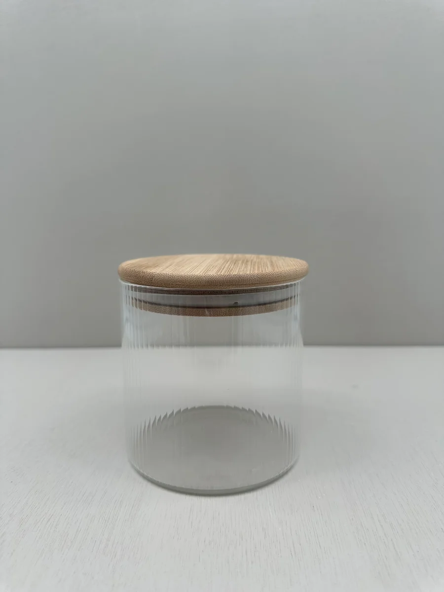 Voorraadpot ribbleglass short – bamboe deksel – 600ml
